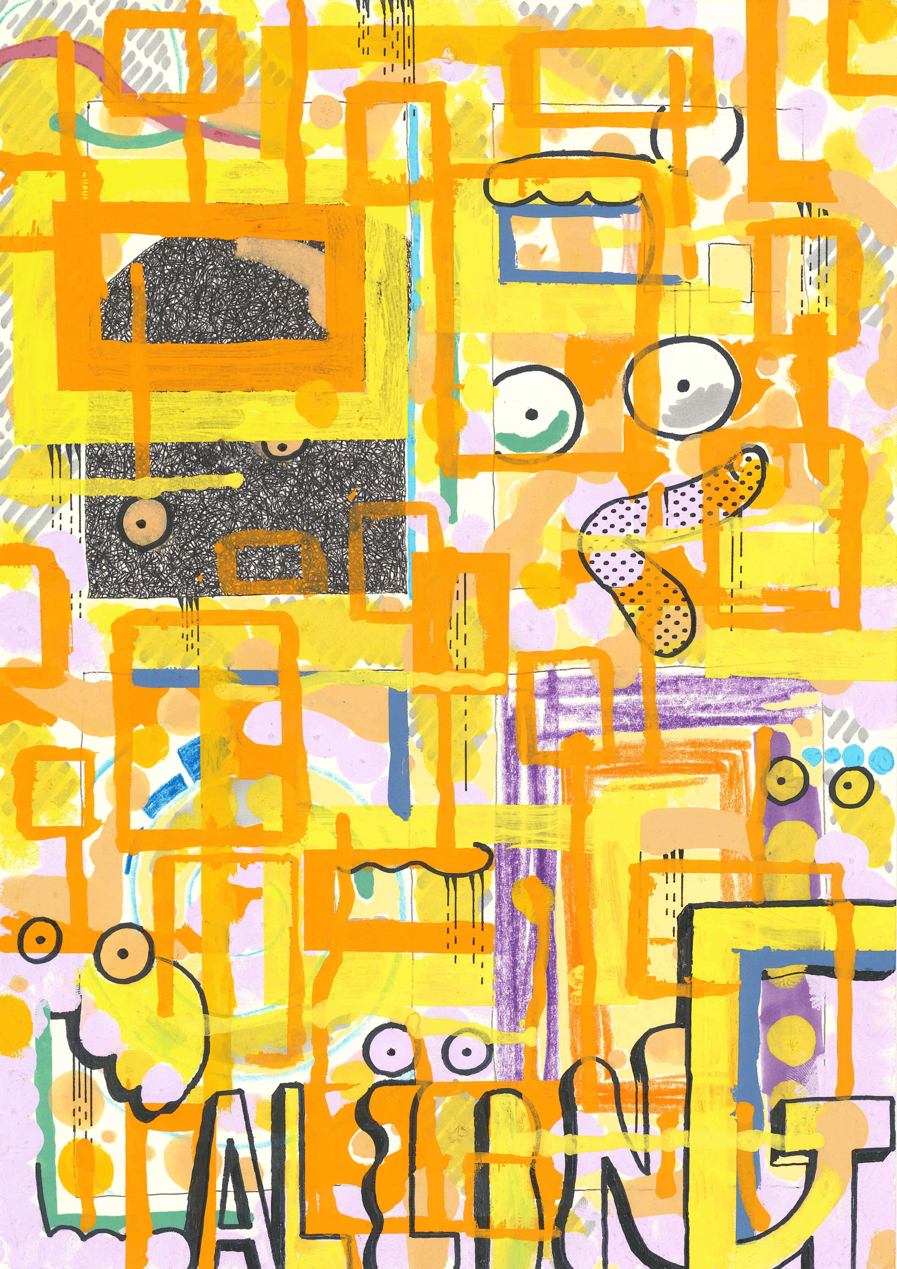 今回も太い線を効果的に用いて目玉や波を描きました。