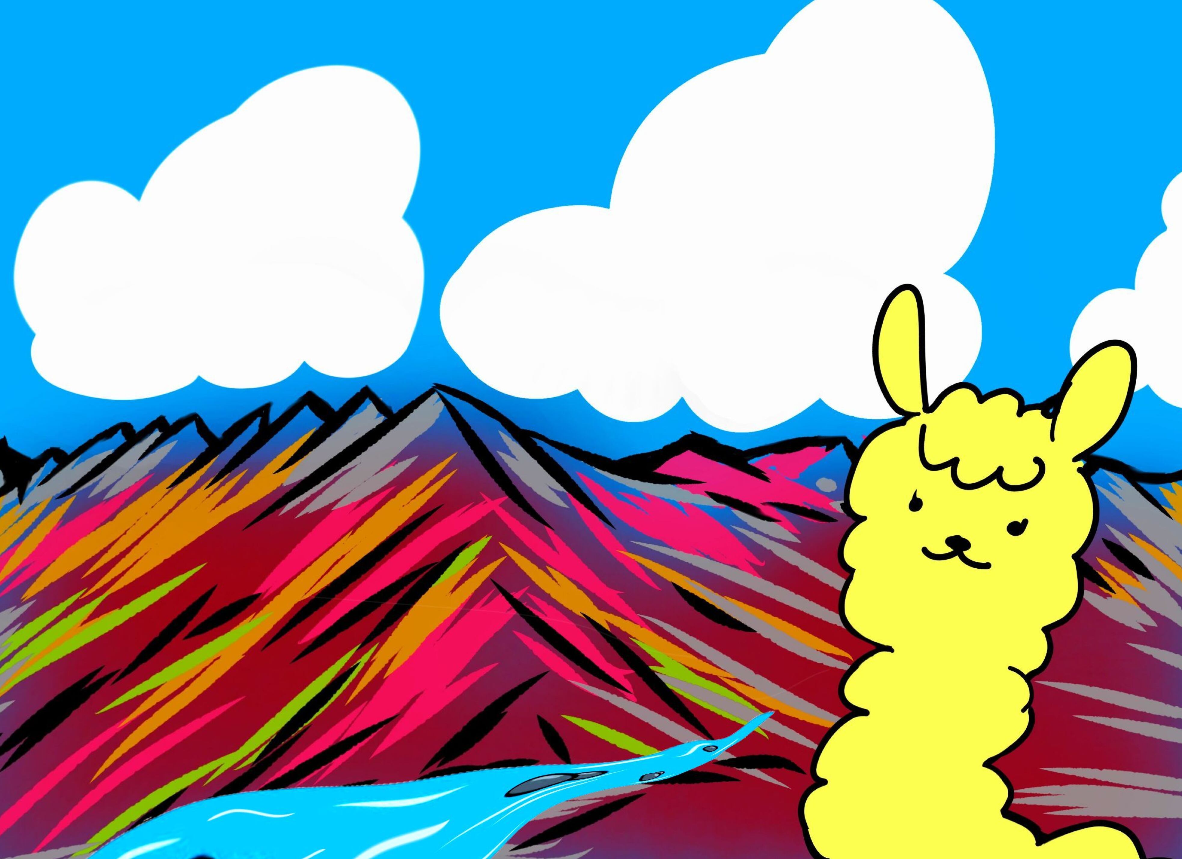 山脈をカラフルに描いたり、アルパカを可愛く表現することにこだわりました。