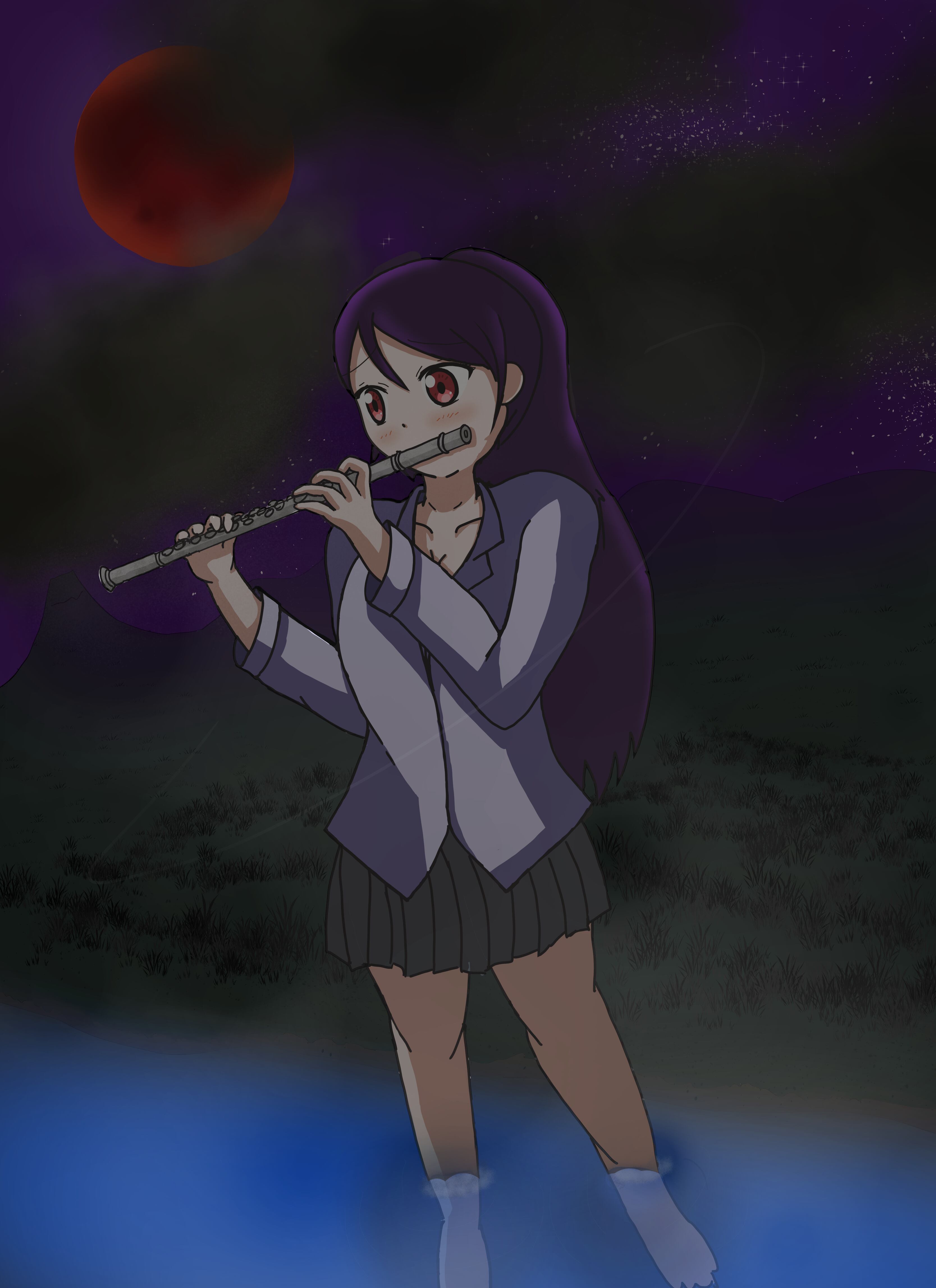 メロディラインが物悲しいのでフルートを吹くという題材にしました。