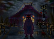 ローブを纏ったピエロと、暗がりに潜む異形の生き物たちが登場しますが、